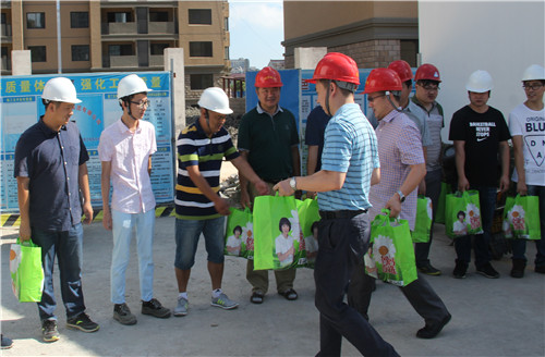 在項目現場,城市集團領導向在高溫天氣下辛勤工作的職工們表示了親切的問候,并親手將防暑降溫用品送到了他們手中。城市集團領導一行還叮囑相關負責人要落實好防暑降溫工作,根據工作實際合理安排作業內容,確保高溫季節一線職工安全度暑和各項工作的有序開展。